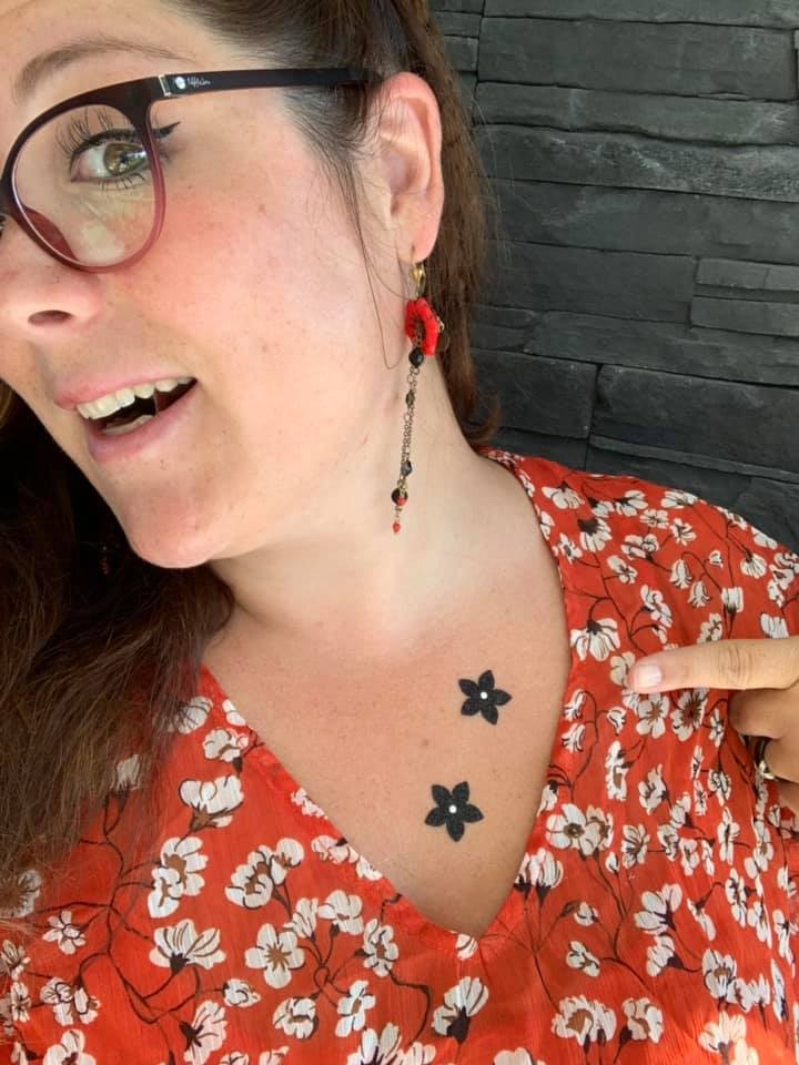 A porter dans le décolleté, à l'intérieur du poignet, sur l'épaule, sur un dos dénudé, à la cheville, ... et même dans les cheveux!